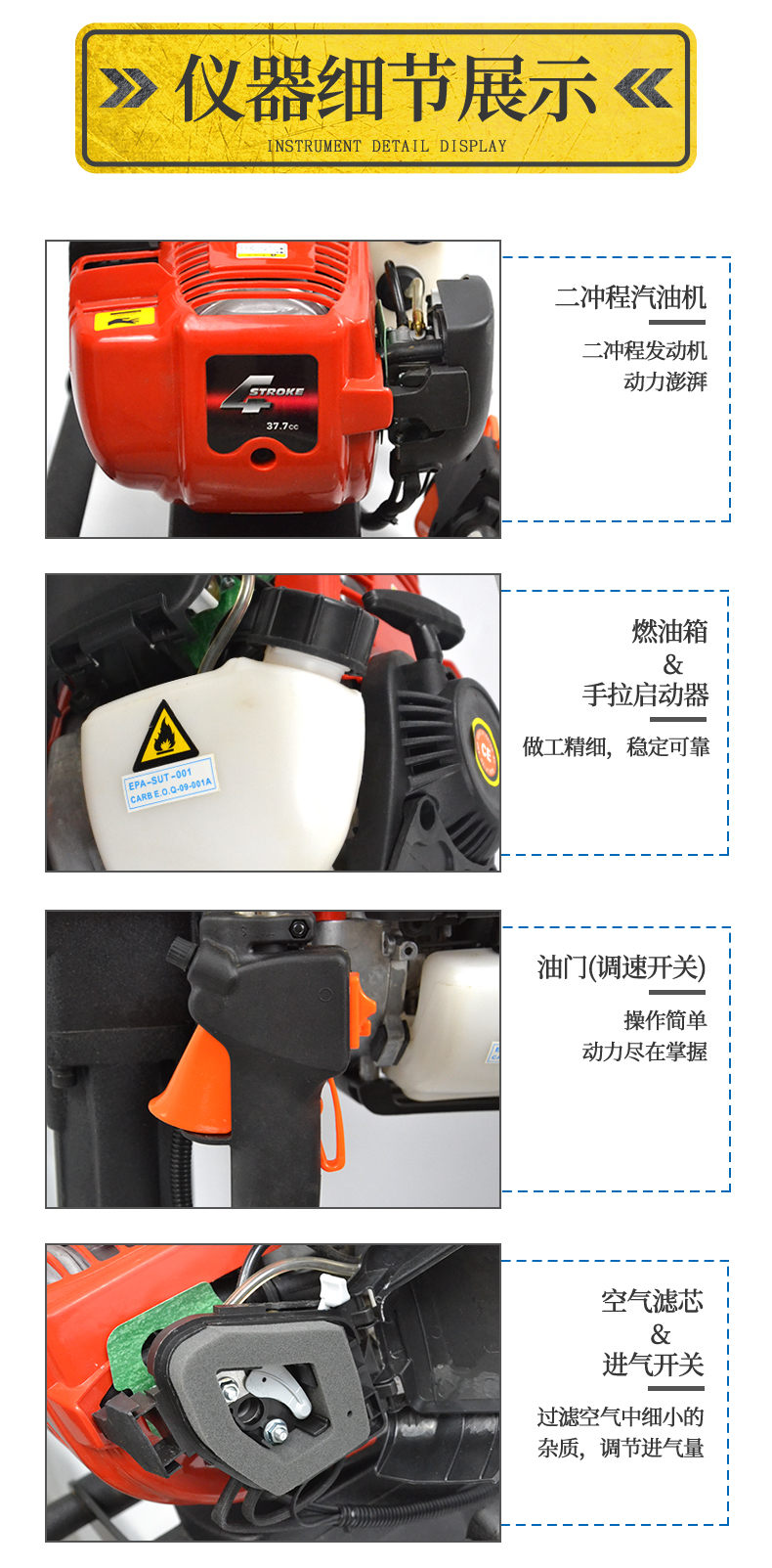 4、發動機類型:單缸二沖程發動機