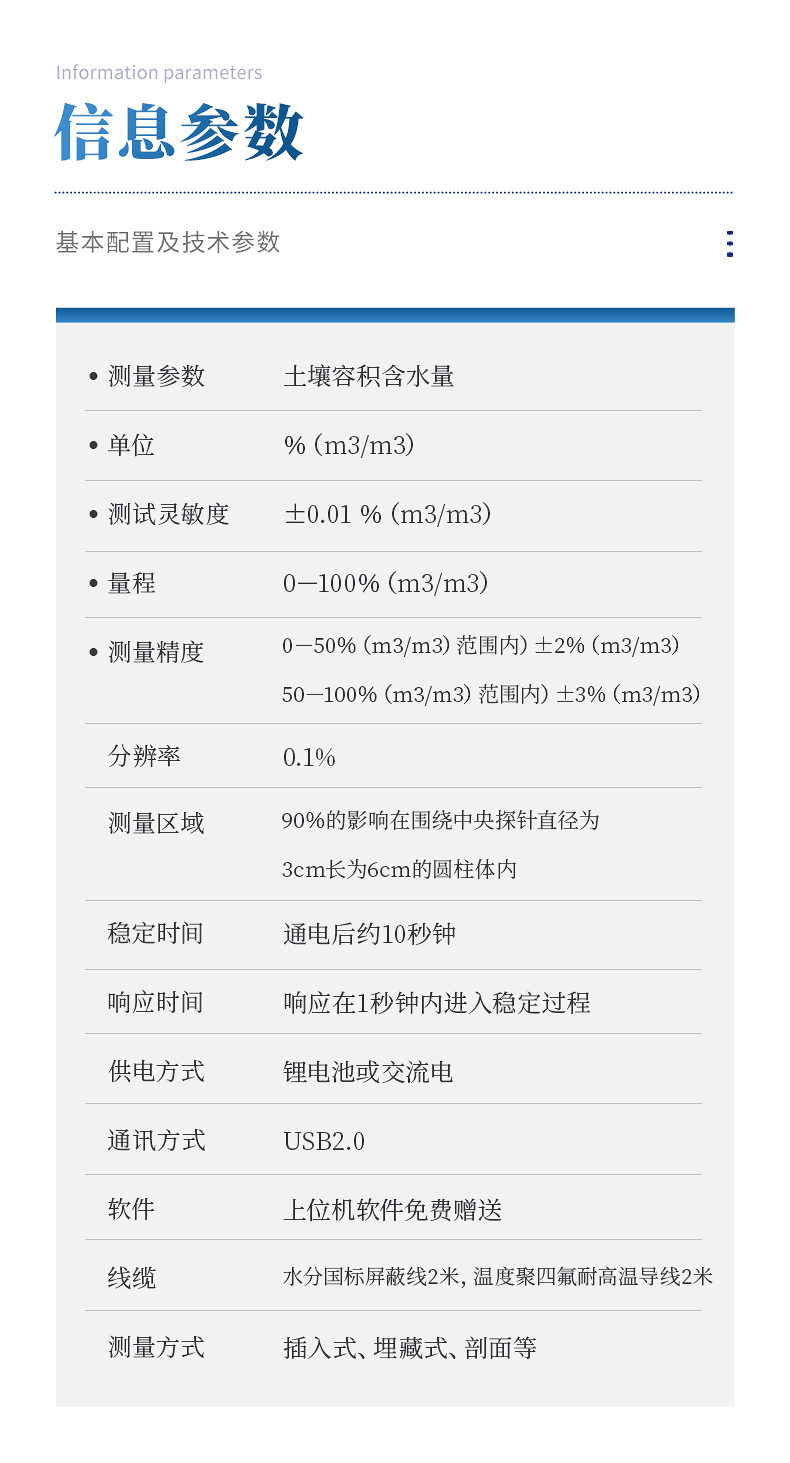 1、測量參數:土壤容積含水量;