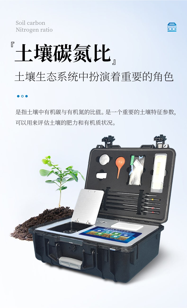 1、土壤養分:●土壤總有機碳TOC、土壤碳氮比、土壤銨態氮、土壤有效磷、土壤速效鉀、土壤硝態氮、土壤水解氮、土壤全氮、土壤全磷、土壤全鉀、土壤有機質(丘林法)、土壤有機質(浸提法)、PH值、含鹽量、水分?!裢寥乐形⒘吭兀和寥棱}、土壤鎂、土壤硫、土壤硅、土壤硼、土壤鐵、土壤銅、土壤錳、土壤鋅、土壤氯。